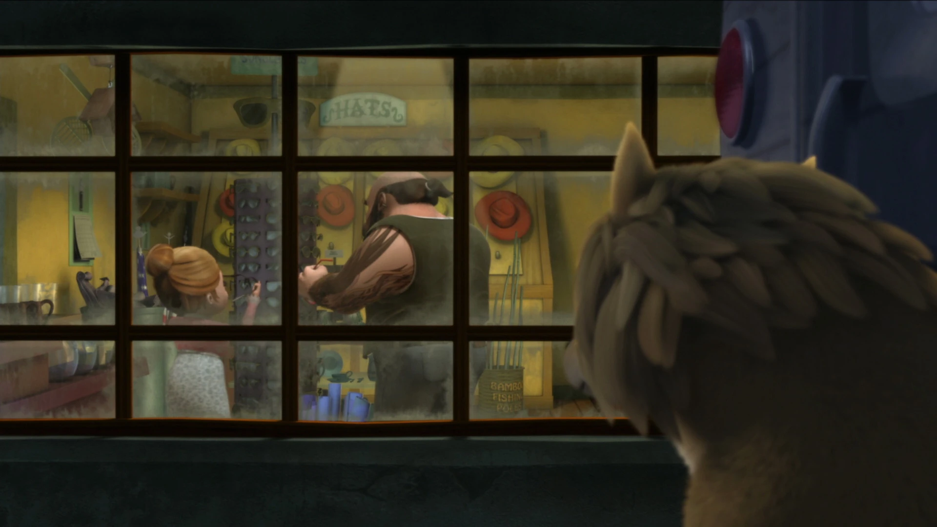 The station appeared again in Alpha and Omega 2: A Howl-iday Adventure, however, unlike last time, when Humphrey, Kate, along with Stinky, Claudette, and Runt where passing through until Max spots them. Upon seeing them, he looked back at his family portrait than back at them, seeing they, too, have a family, Max left the door open and drove off in his pickup truck. The wolves found he left food for them and settle there for Christmas under the Christmas tree Max set up.
